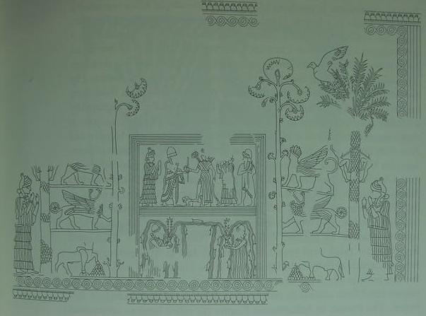 Professor Parrot (1967) who excavated Mari remarks on its mural which he found and its suggestion to him of themes associated with Genesis' Garden of Eden: